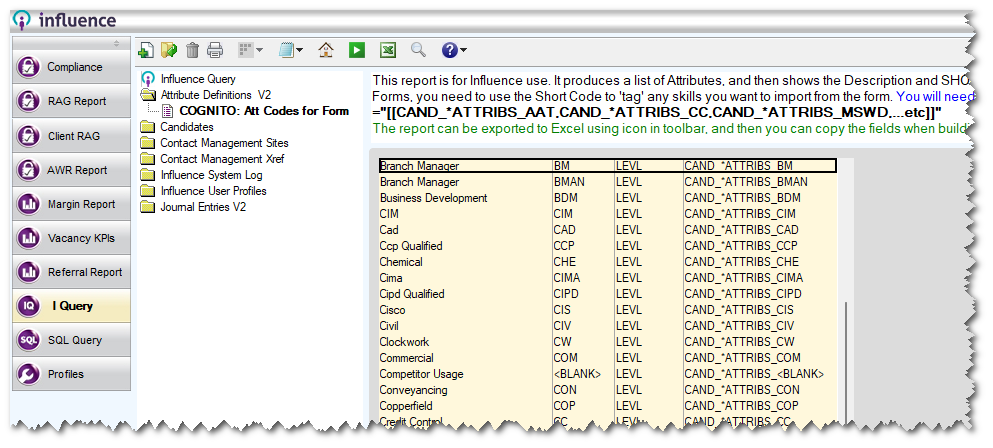 Simple download the report called IX_COG_ATT.Zip (attached below) and then drag/drop the file onto the [IQuery] workbench in your Influence database.