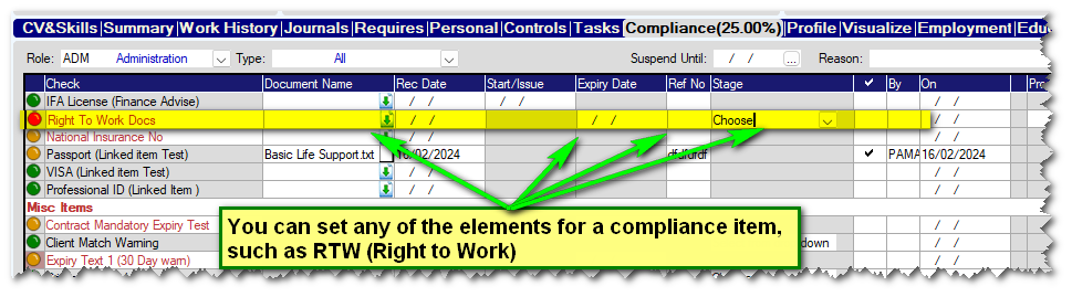 As well as being able to set information for compliance items, such as Issue Date, Expiry Date, etc, you can also get people to upload copies of the document itself.