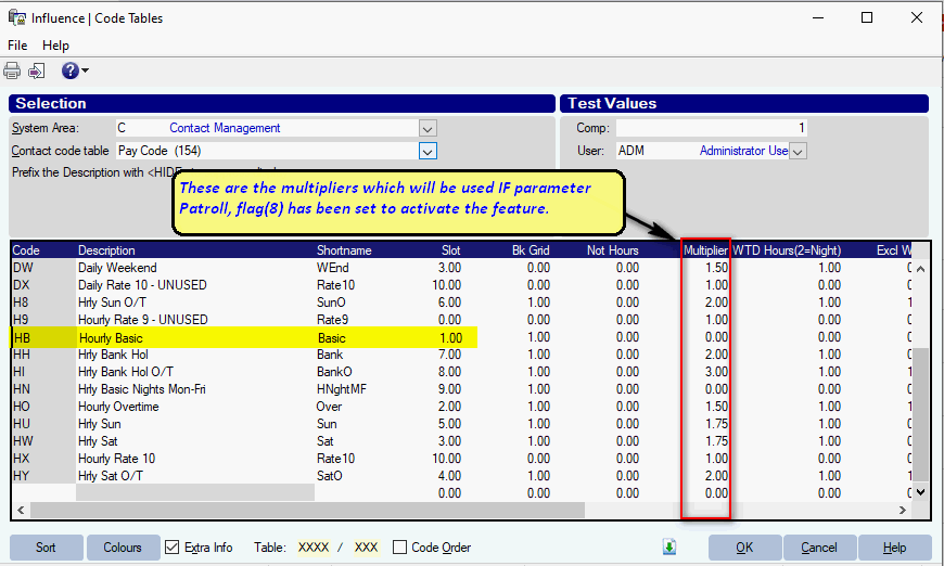 Additional Rates are setup within code tables Pay Codes [154], and can be flagged as non-hours using Extra Info [ ] |