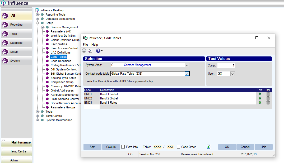 Maintenance > Setup > Code Tables