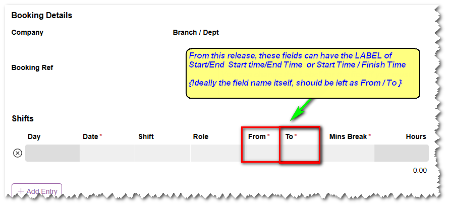 - Individual SHIFT Owner column now displayed in TIMESHEET ENTRY/EDIT BOOKING
