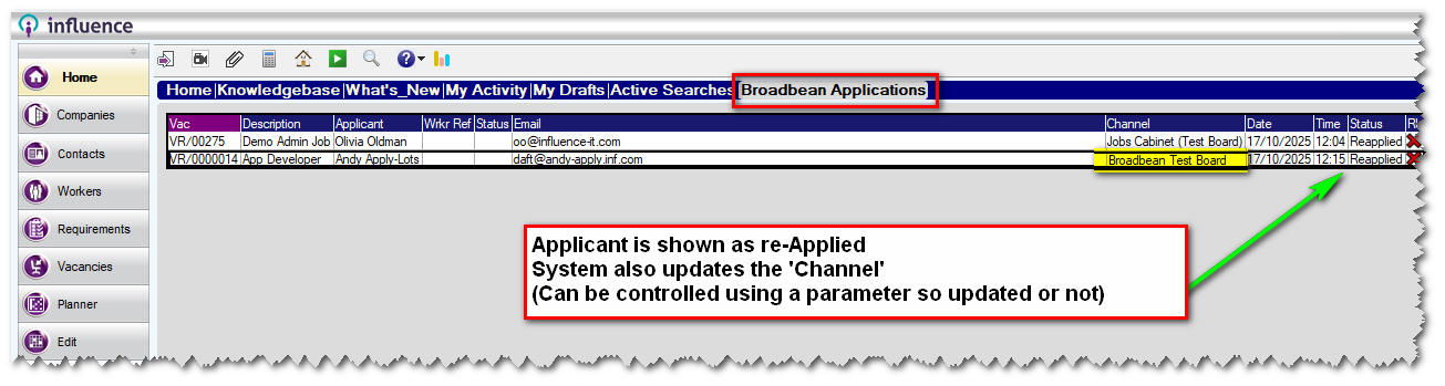 Previously, if a candidate applied multiple times to the same job via Broadbean, only their first application was retrieved; subsequent applications (2, 3, 4, etc.) were ignored.