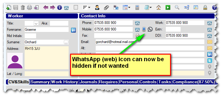- The WhatsApp icon that appears next to the mobile number of Candidates/Contacts which opens 'whatsapp' web, can now be hidden if you do not want to use this feature.