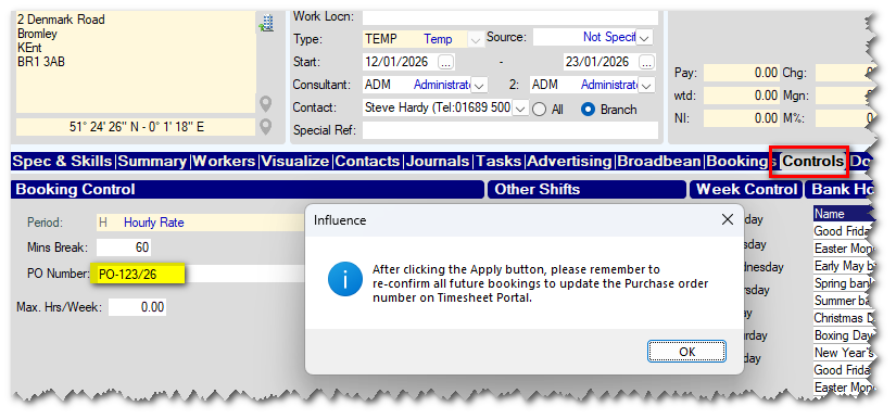 For customers using the TSP Portal integration, for customers making bookings that are linked to a TEMP Vacancy (as opposed to ad-hoc Bookings) it is now an option to always send the P/O Number to TSP from the VACANCY.