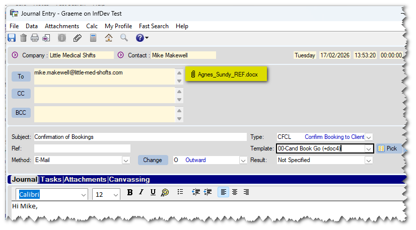 - Ability to "Rename" candidate document attachments to include worker name. When using merge fields such as [[SPC_CAND_DOC_XX]] to attach a document from a particular "Slot" on the [Docs] tab of a candidate to an email template, it is now possible to get the system to rename the document, to include the candidate name.